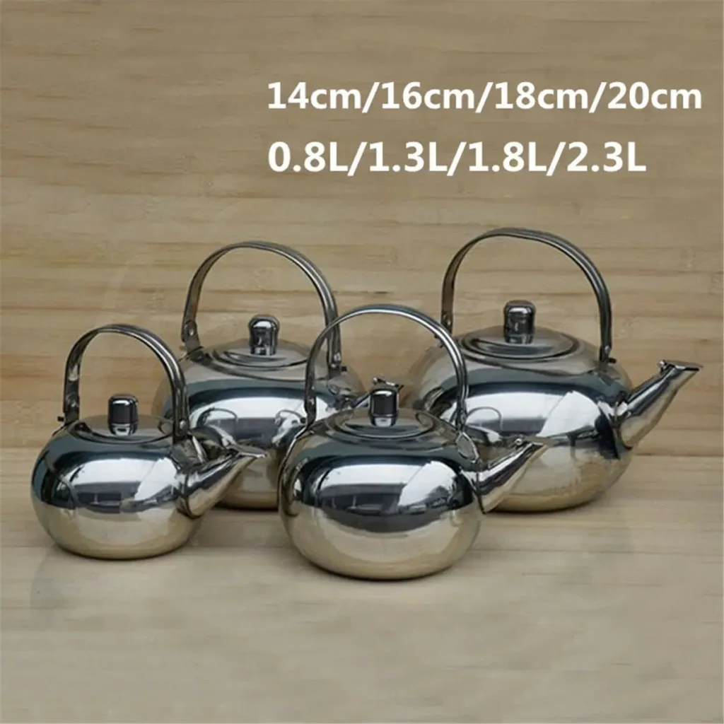 0.8/1.6/1.8/2.3L Stainless Steel Sliver Water Kettles Teapot Household Kitchenware Coffee Pot with Tea Leaf Infuser Strainer