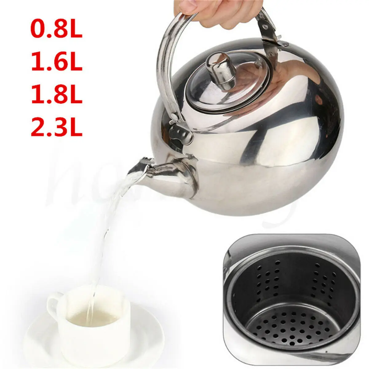 Features: High quality material,Durable and heat resistant Stainless steel filter filtered tea more convenient,tea leaves or other dross can be filtered Spout is welded precisely and polished many times, no leaking Perfect use for making tea and other drinks Teapot is mirror gloss finished, easy to clean