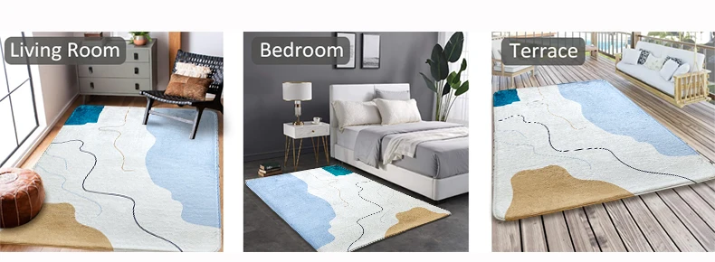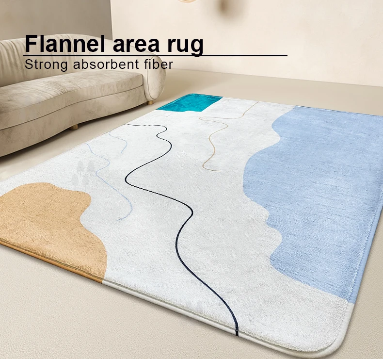 Blue and White Printing Abstract Wave Area Rug Soft Relax Sitting Mat