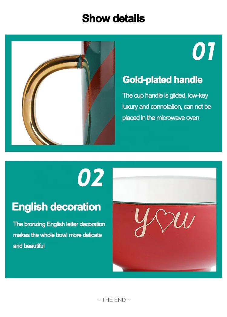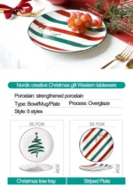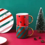 Christmas Design Ceramic Tableware Set 8″ Ceramic Plate 4.5″ Salad Cake Bowl 400ml Ceramic Coffee Mug Cup With Golden Handle |