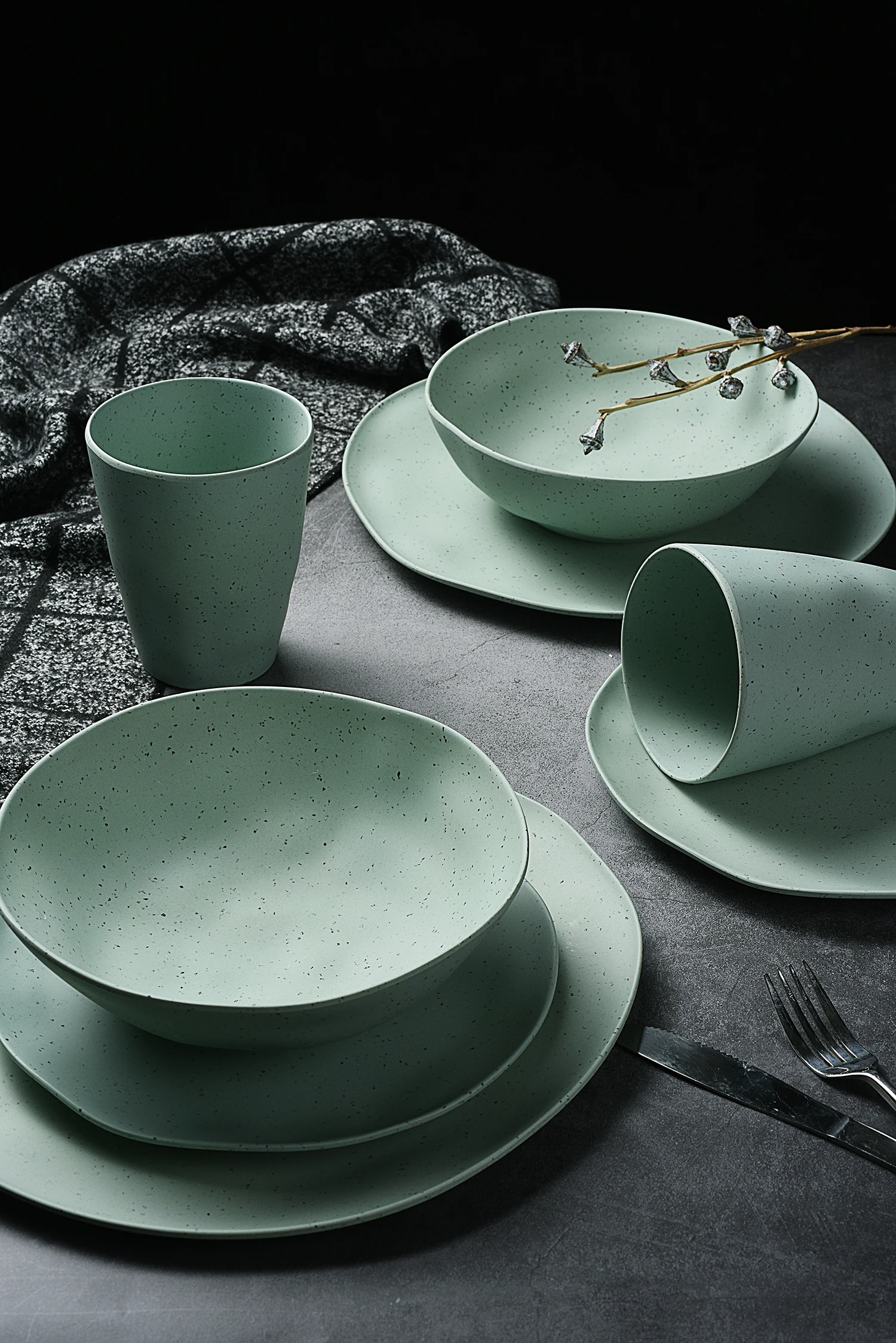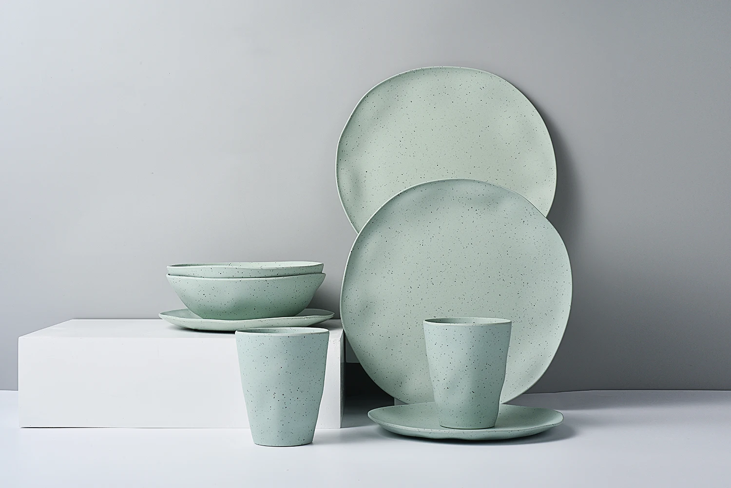 Our NEW tableware is bamboo fiber plant material (it will be crushed into powder and then pressed into tableware), food grade materials, in line with the standard of green and healthy tableware.
