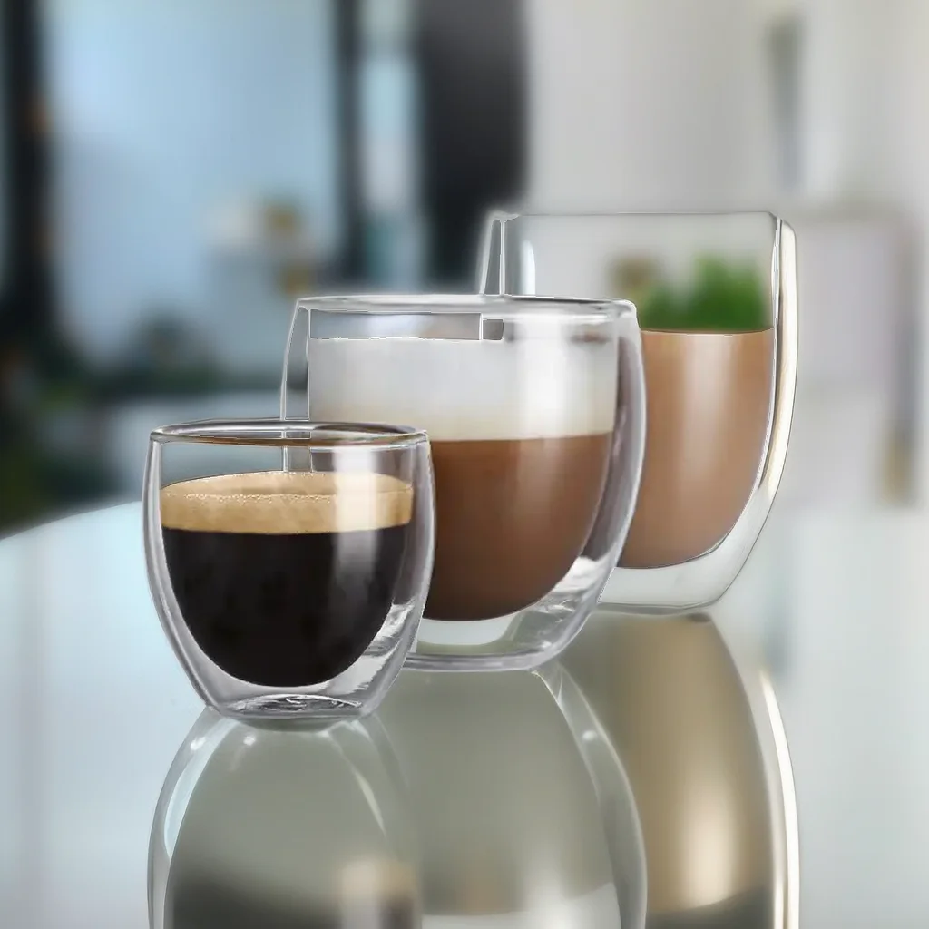 Eco-friendly Double Walled High Borosilicate Glass Coffee or Tea Cups Insulated 250ml 350 450 ml Coffee Mugs