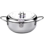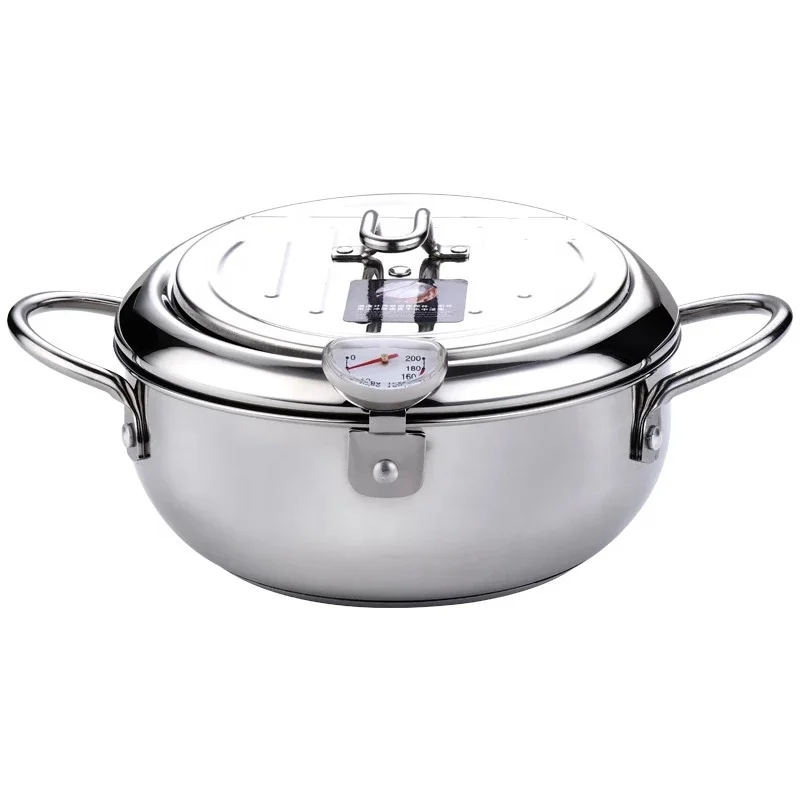 Japanese Deep Frying Pot with a Thermometer and a Lid 304 Stainless Steel Kitchen Tempura Fryer Pan