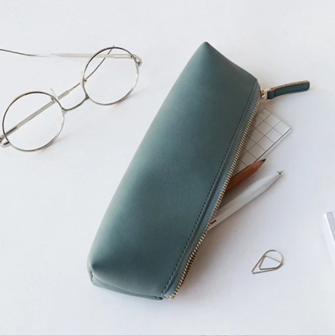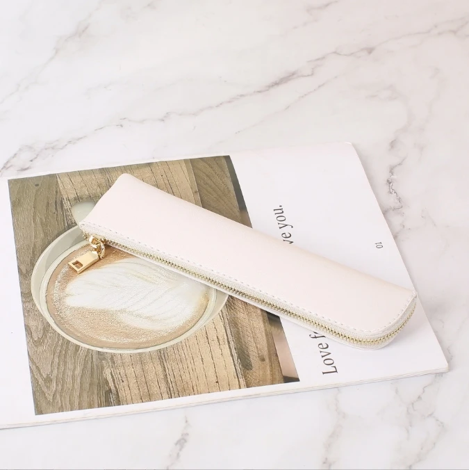 Leather Pen Pencil Case Cute Slim Pen Bag small Pencil Pouch Lovely Stationery Bag Portable Zipper Bag for Pen Pencils Markers