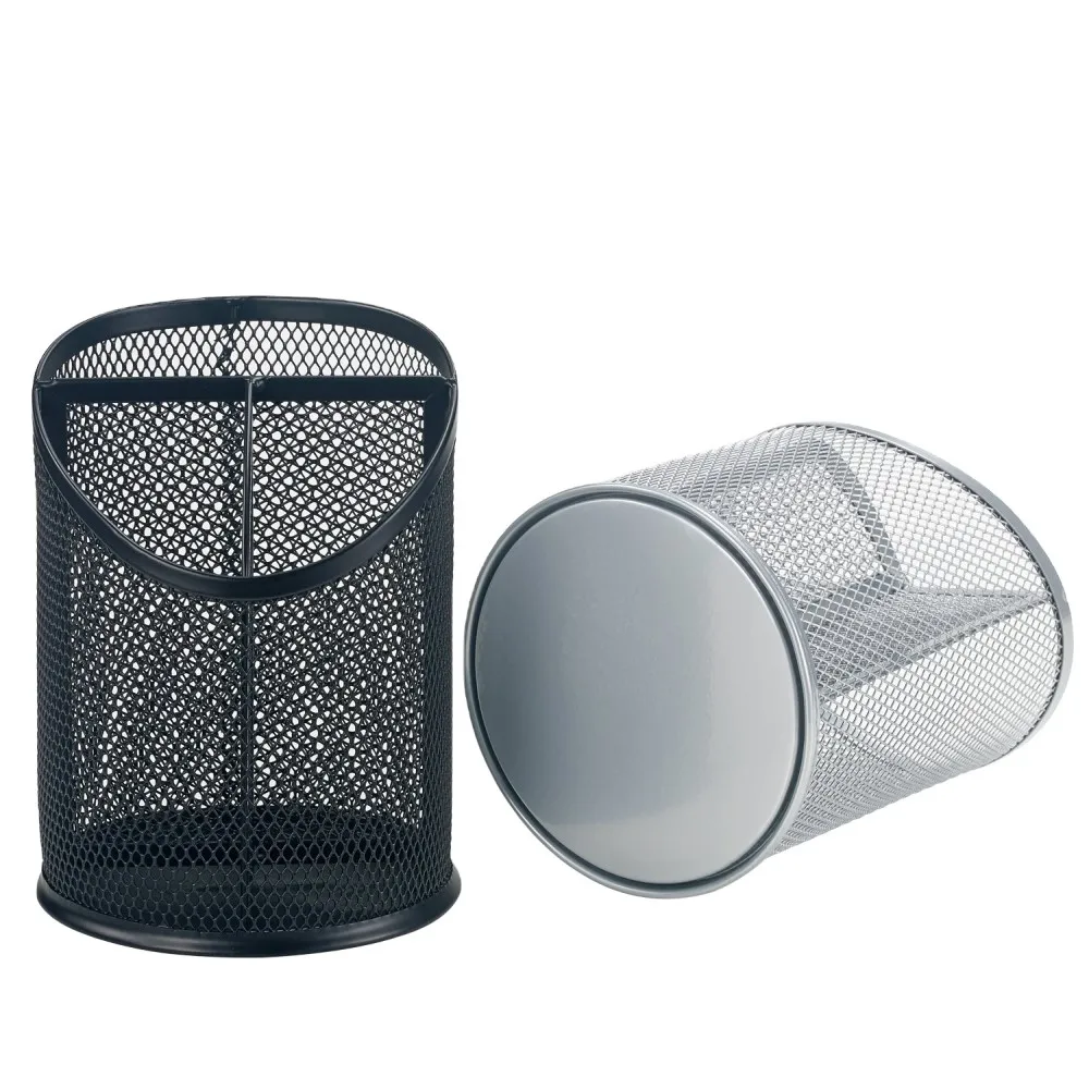 Round Steel Mesh Pen Holder Metal Pencil Desk Holder Organizer with devided 3 Compartments Desk Office Pen Organizer