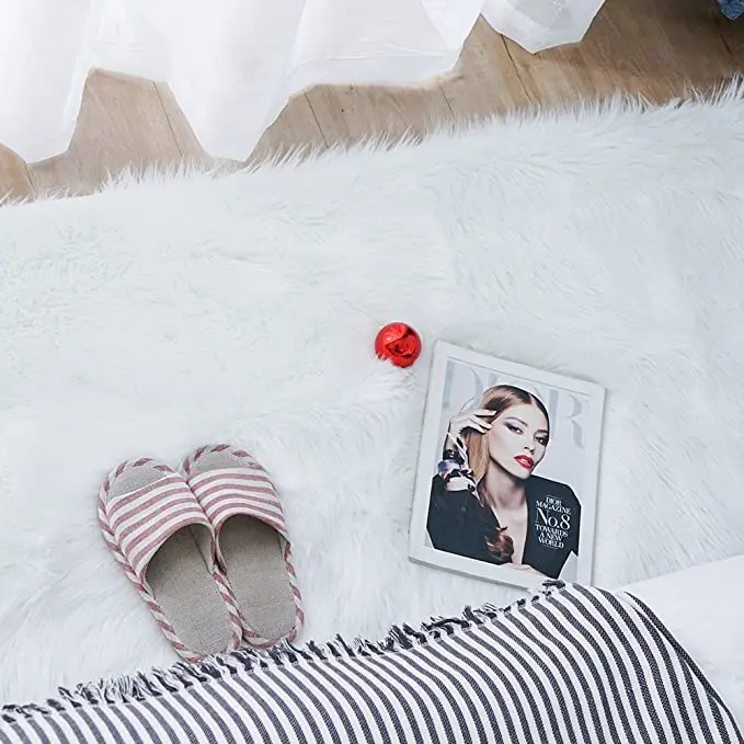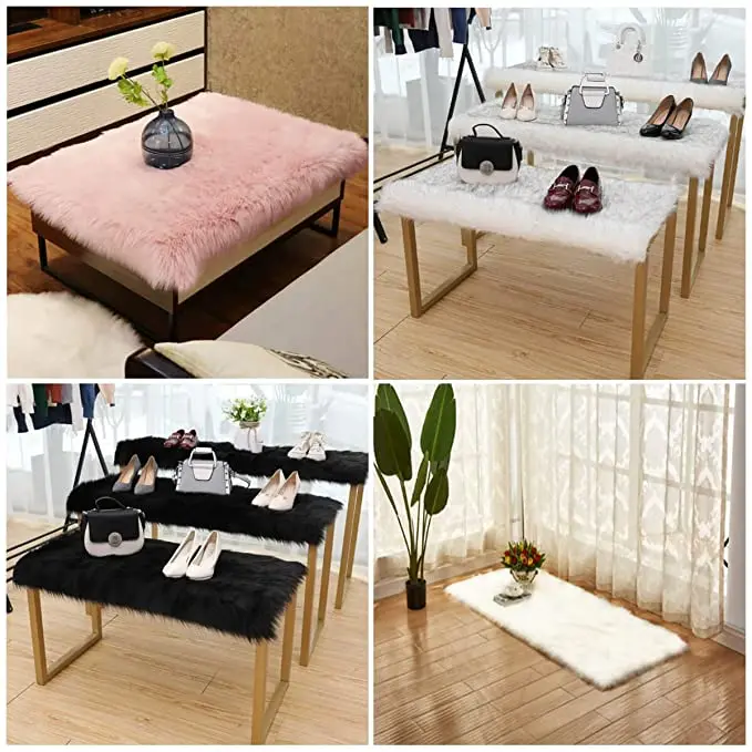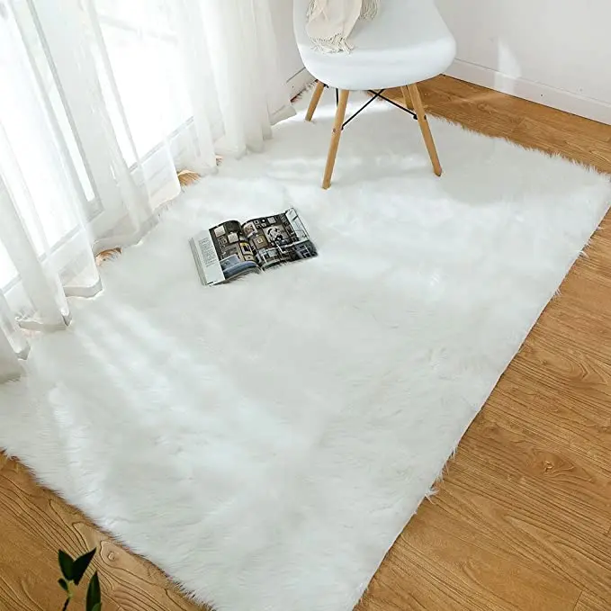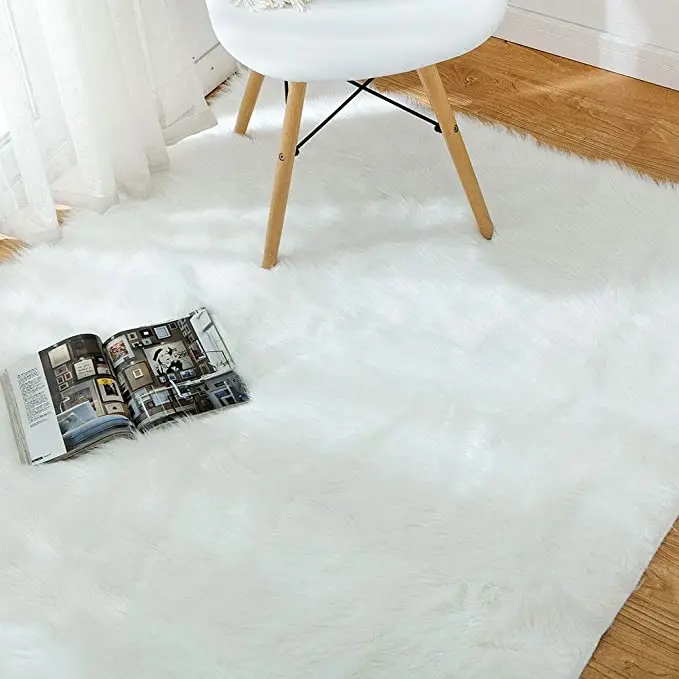 Small Mat 2×3 ft Faux Fur Rug Shaggy Sheepskin Area Baby Bedroom Rugs Home Decorative Shaggy Rectangle Carpet for Exercise